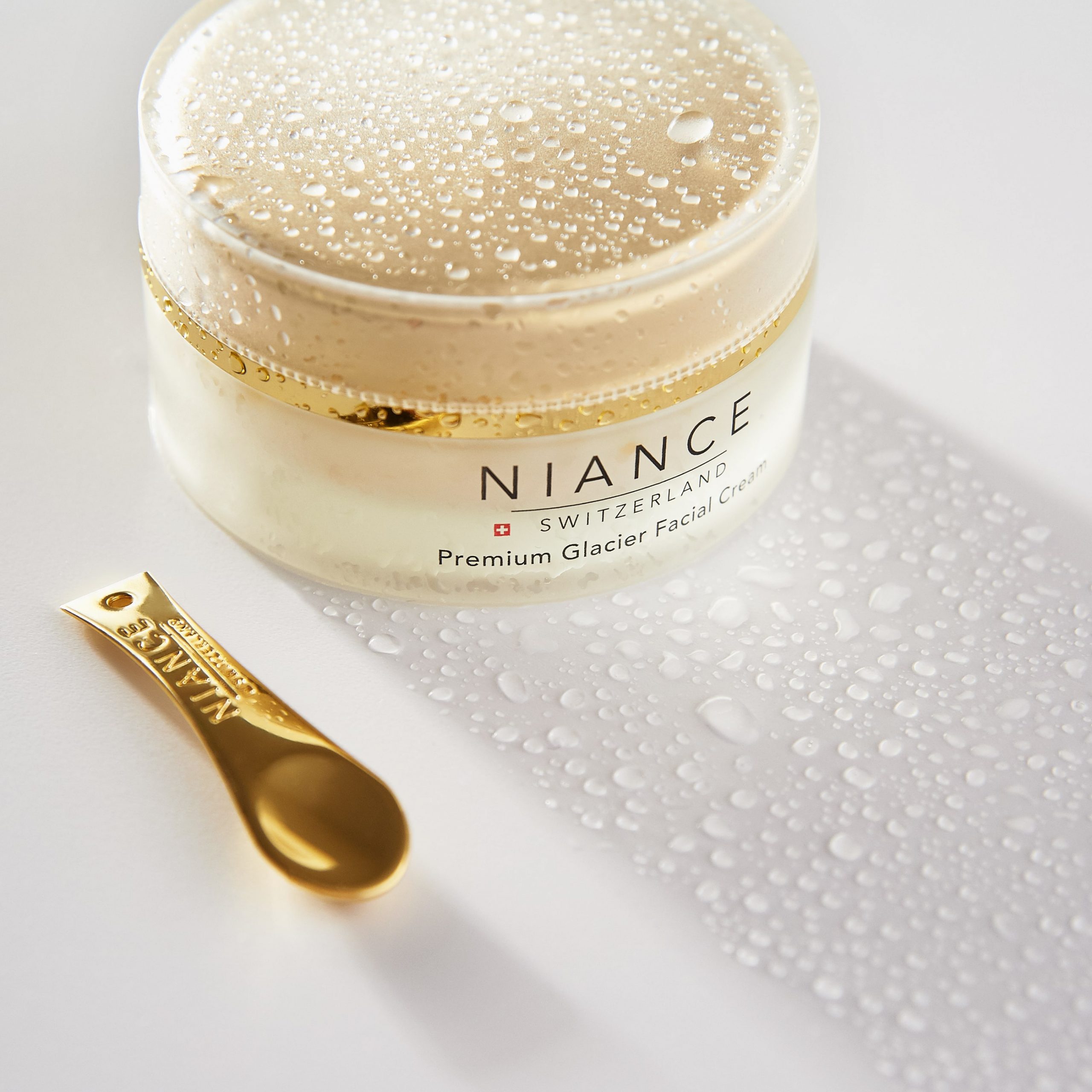 «El efecto vitalizante de la Crema Facial Premium Glacier de NIANCE ya es visible en el momento de la aplicación: la piel se nutre desde dentro y desaparecen las pequeñas arrugas mímicas.»